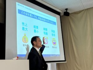 講義では、採算を高めるための仕組みや、一人ひとりが主体的に考え行動することの大切さを